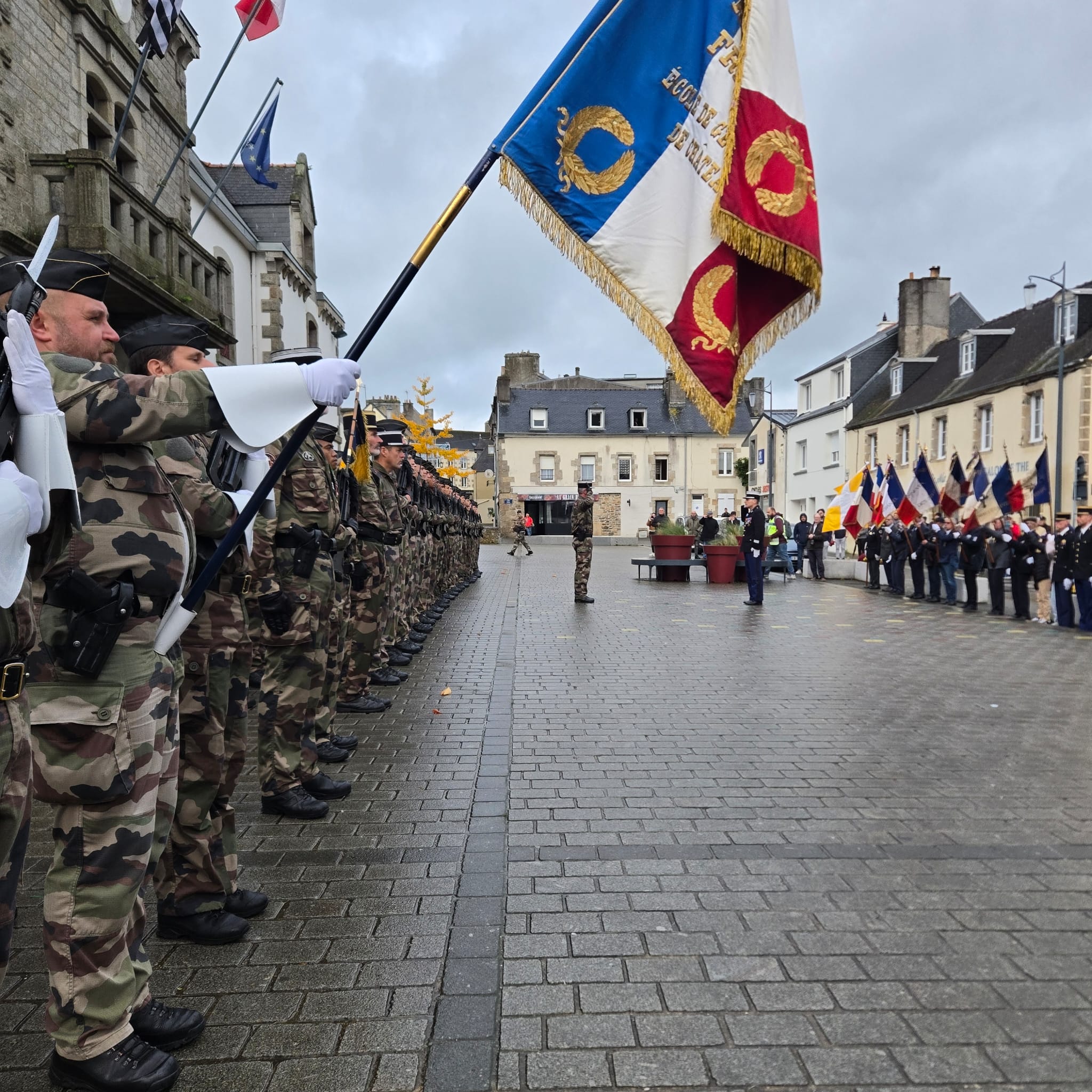 La Présentation du drapeau a eu lieu devant la mairie de Lesneven, avec les élèves de la 138e promotion de l’école de gendarmerie de Châteaulin.