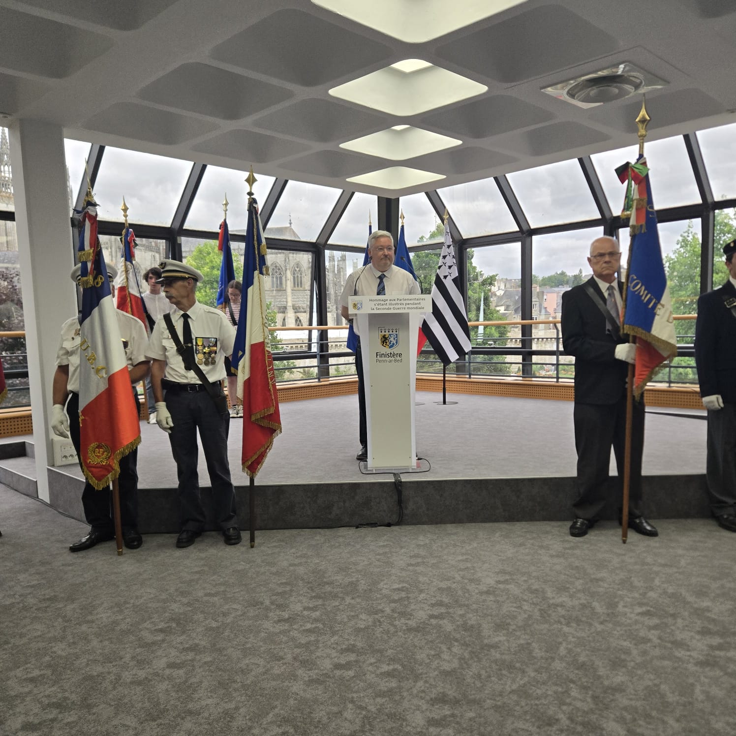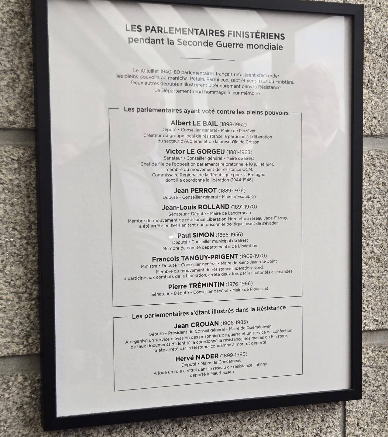 Cet hommage a eu lieu en présence de plusieurs descendants de ces 7 parlementaires ainsi que de nombreux élus finistériens, des représentants des associations patriotiques et de lycéens.