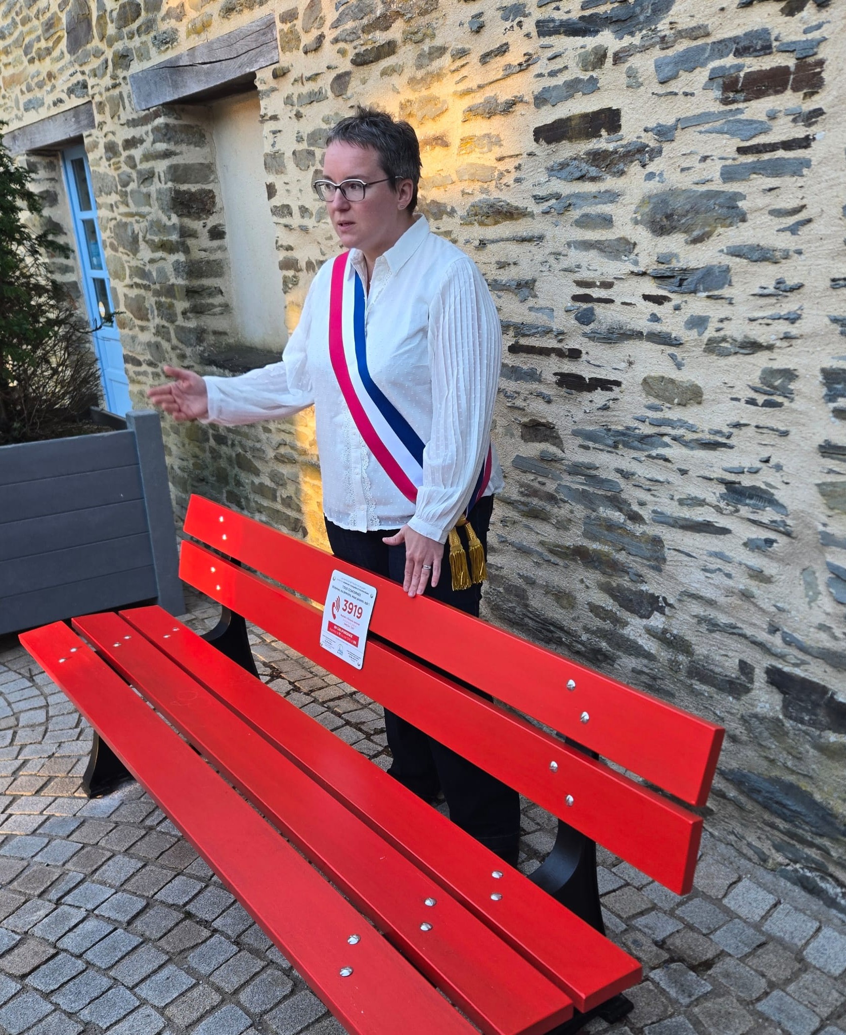 A Pleyben, aux côtés d’Amélie Caro, Maire de la commune, des élus, du CCAS, des associations et des habitants, j’ai participé vendredi 10 octobre à l’inauguration du banc rouge installé au cœur de la commune.