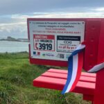 Installé face à la plage des Dames, sur la presqu’île Saint-Laurent, ce banc rouge rappelle l’urgence de protéger, d’accompagner et de ne jamais oublier.