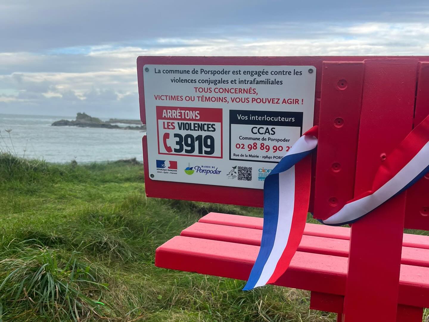 Nous nous sommes réunis le samedi 29 novembre à Porspoder pour une très belle inauguration du banc rouge, symbole fort de la lutte contre les féminicides et les violences faites aux femmes.